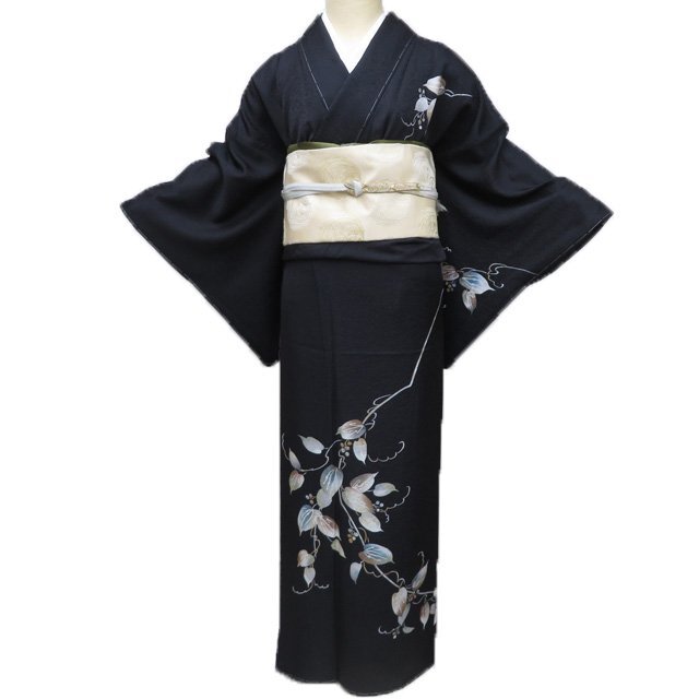 > 特選 訪問着 着物 未使用 正絹 袷 フォーマル 植物文様 黒色 多色 身丈163cm 裄66.5cm L ワイド きもの北條 A1197-6