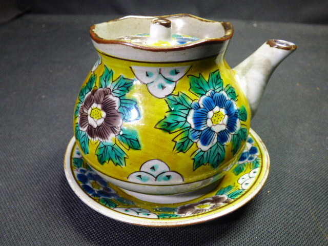 - ま861.九谷美山 油差し 吉田屋牡丹文 調味料入れ