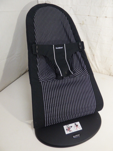 - ま873.ベビービヨルン バウンサー ストライプ ブラック リバーシブルカバー 収納袋付き