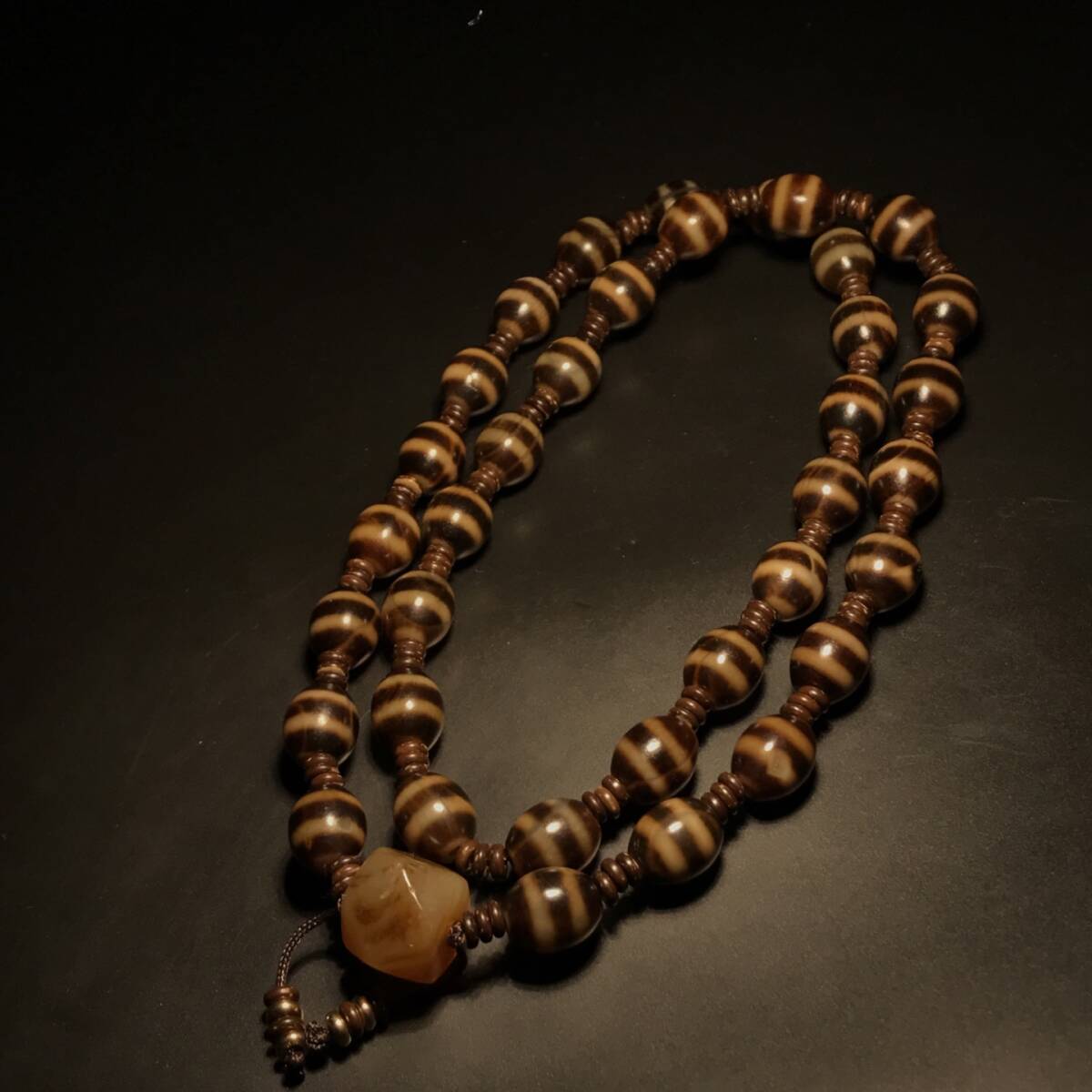 - 清 古瑪瑙彫 包漿黑金瑪瑙 線珠 達洛天珠 高油 仏珠 手持 項鏈 箱付 置物擺件 時代物 古董品 骨董 旧家藏出 唐物 中国古玩 古美術品