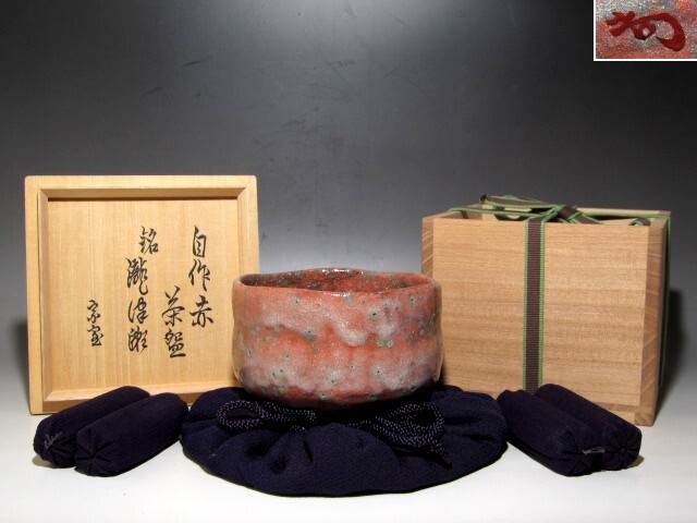 - ★裏千家裏千家十四世淡々斎 自作赤茶碗「瀧津瀬」趣ある名品☆c428