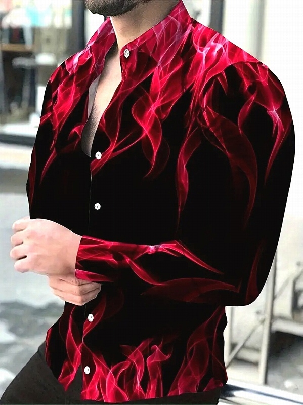 - (5月下旬入荷) 炎柄 長袖シャツ 黒赤 064 Yシャツ ドレスシャツ ヤクザ ヤンキー オラオラ系 ホスト スーツ 服 派手 メンズ ファッション