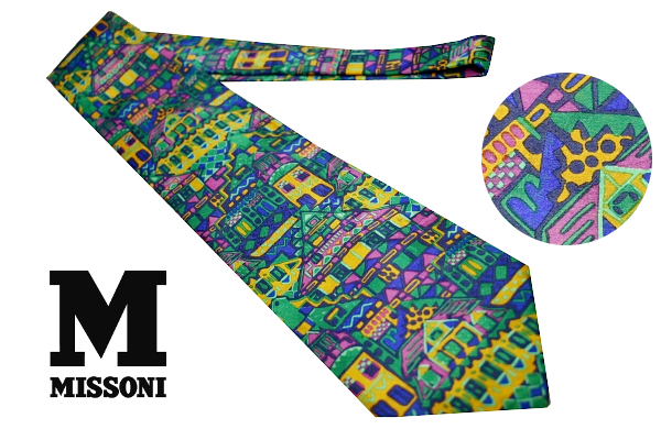 > N-2988★送料無料★超美品★MISSONI CRAVATTE ミッソーニ クラバッテ★正規品 イタリア生地 日本製 色の魔術師 家 街 シルクネクタイ