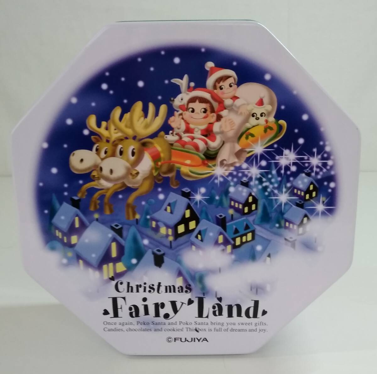 - 【TN-2061】[中古品]不二家 ペコちゃん ポコちゃん クリスマスフェアリーランドL お菓子缶 サンタとトナカイ ② [KO]