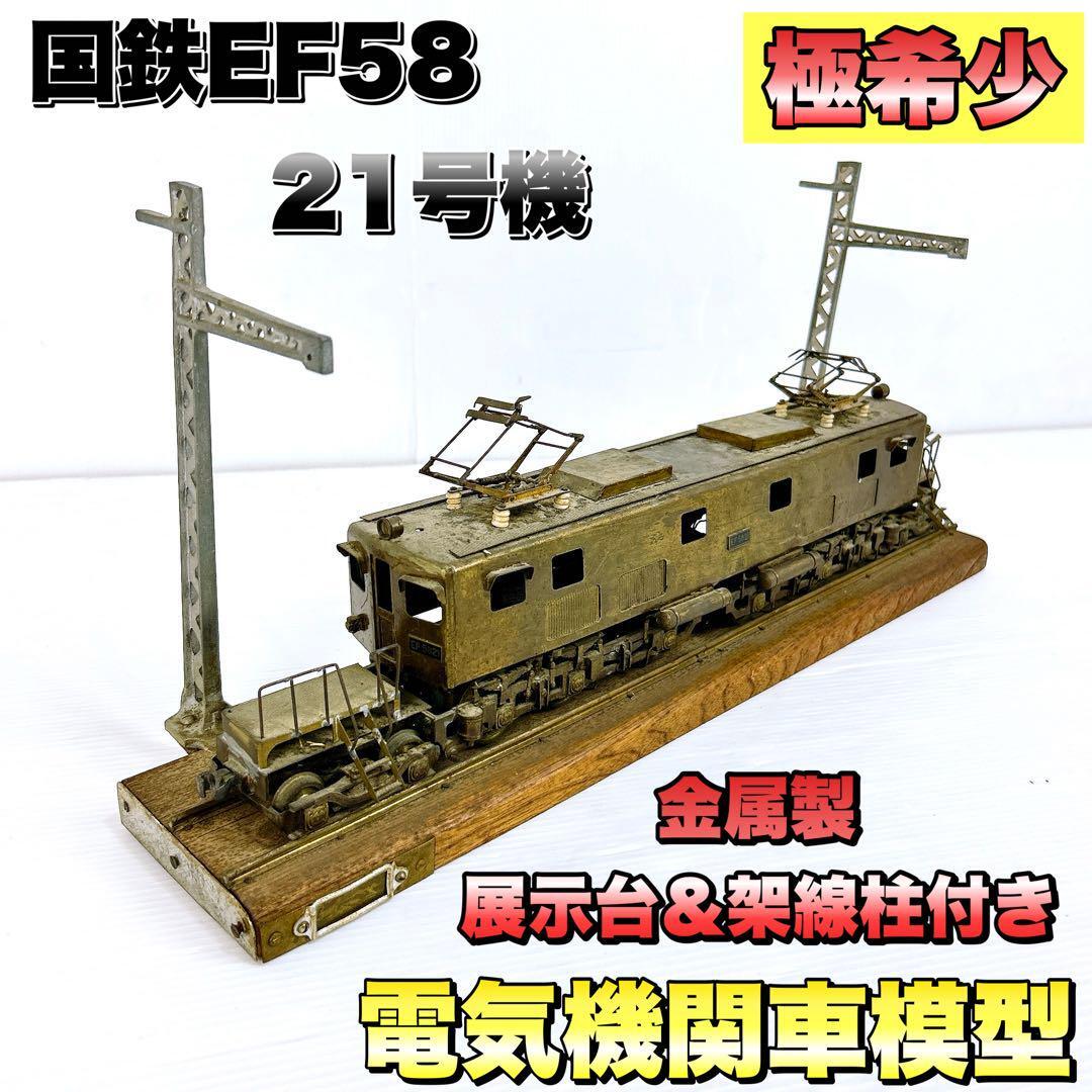 - 【希少】国鉄EF58 21号機 電気機関車模型/金属製・展示台&架線柱付き