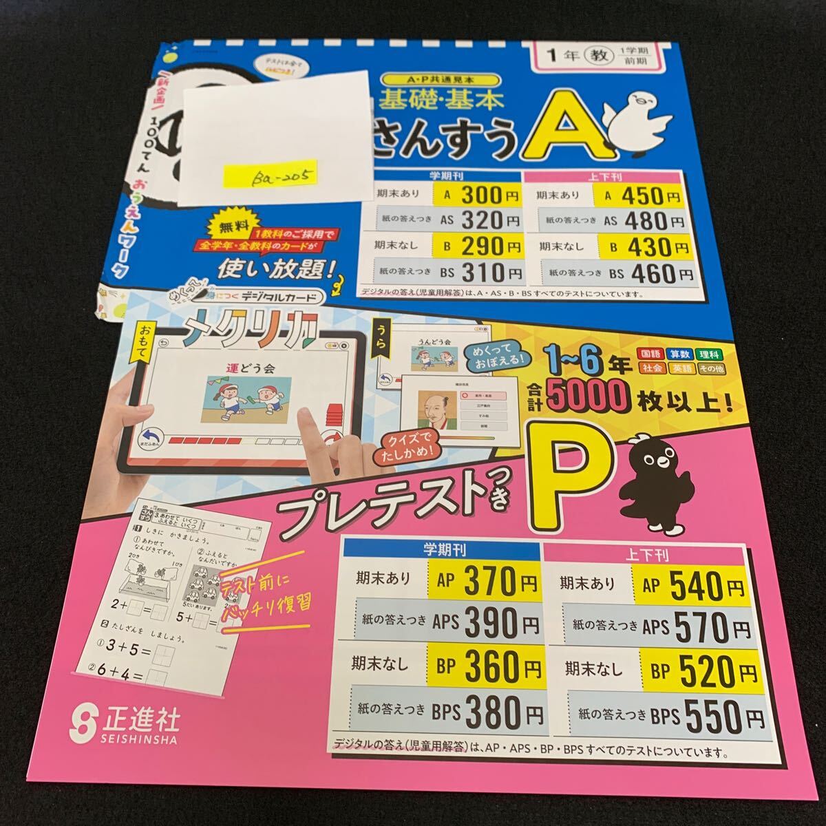 > Ba-205/1年生/1学期/前期/正進社/小学生 国語 算数 英語 社会 理科 漢字 家庭科 テキスト テスト用紙 教材 文章問題 計算/L7/705027