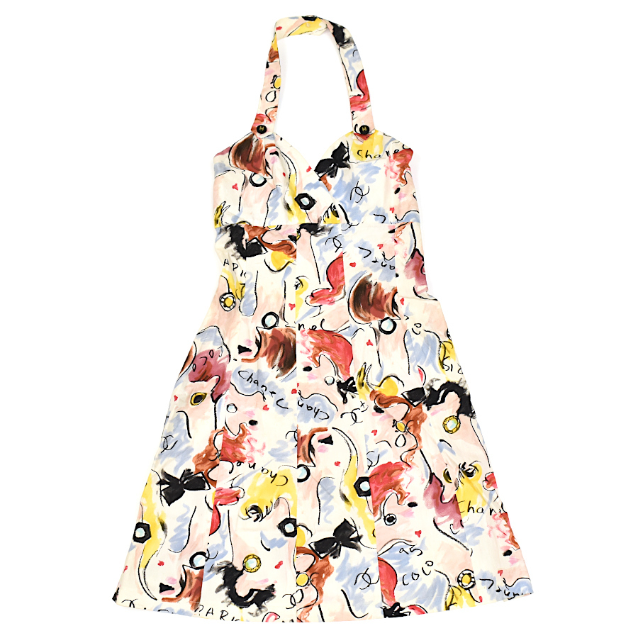 - シャネル ワンピース スリーブレスドレス ホルターネック ココマーク コットン ホワイト マルチ 95P #38 CHANEL