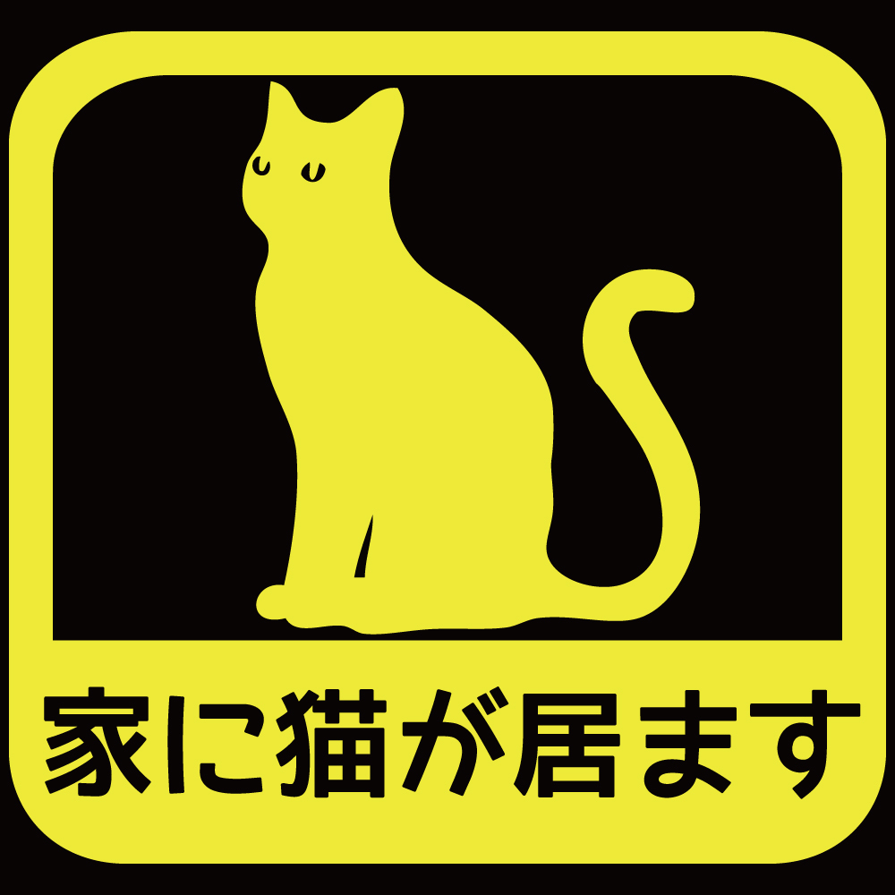 > ステッカー 家に猫が居ます【A/黄色】14.5cm x14.5cm ねこ ネコがいます カーステッカー カッティングステッカー 防水 救済ステッカー