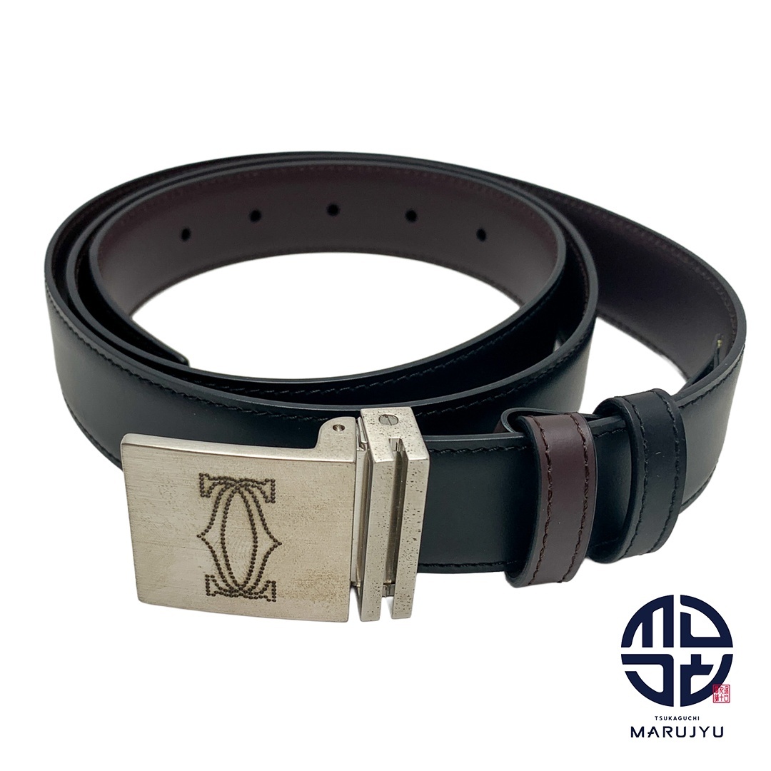 > Cartier カルティエ 黒×茶 ブラック×ブラウン レザー マストドゥカルティエ パンチング ベルト メンズ ファッション 小物 ブランド