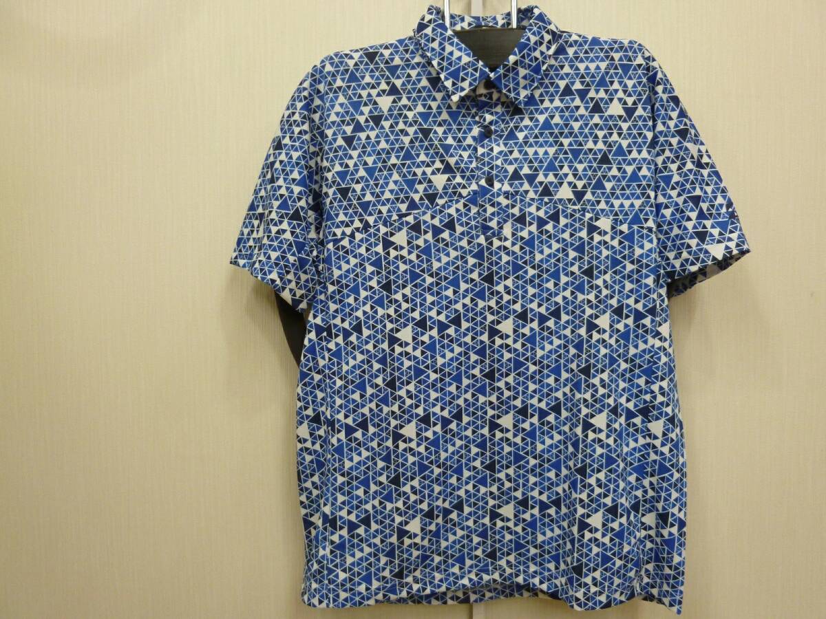 - 《新品》 ブリヂストンゴルフ ★ 春夏 ★ 半袖共衿 シャツ★トライアングルプリント★ 肌面DRY★ YGM06A ★ ブルー/ 3L