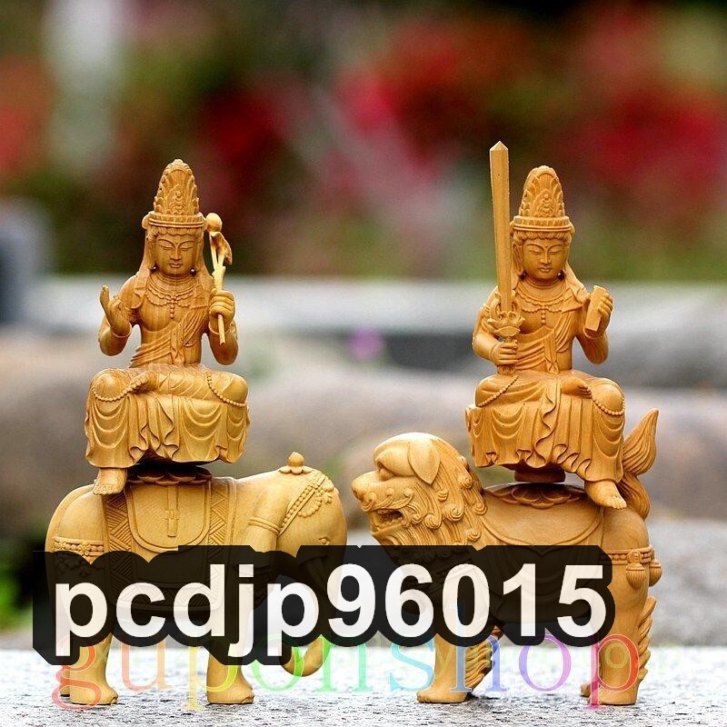 - 新品 文殊菩薩 普賢菩薩 職人手作り 仏教美術 木彫仏教 仏教工芸品