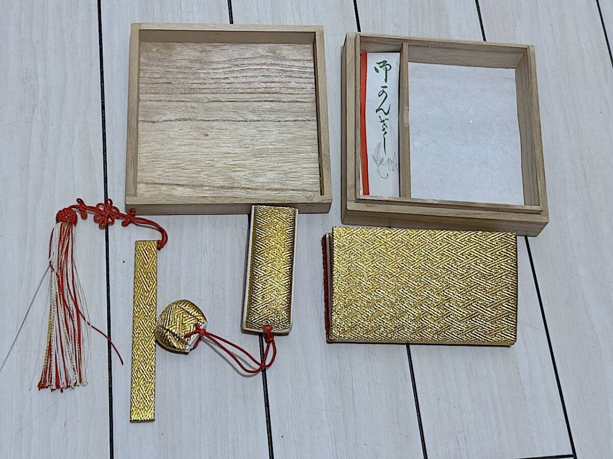 - 【美品】金襴細工の和装小物セット&銀色髪飾り/桐箱入り(未使用保管品)