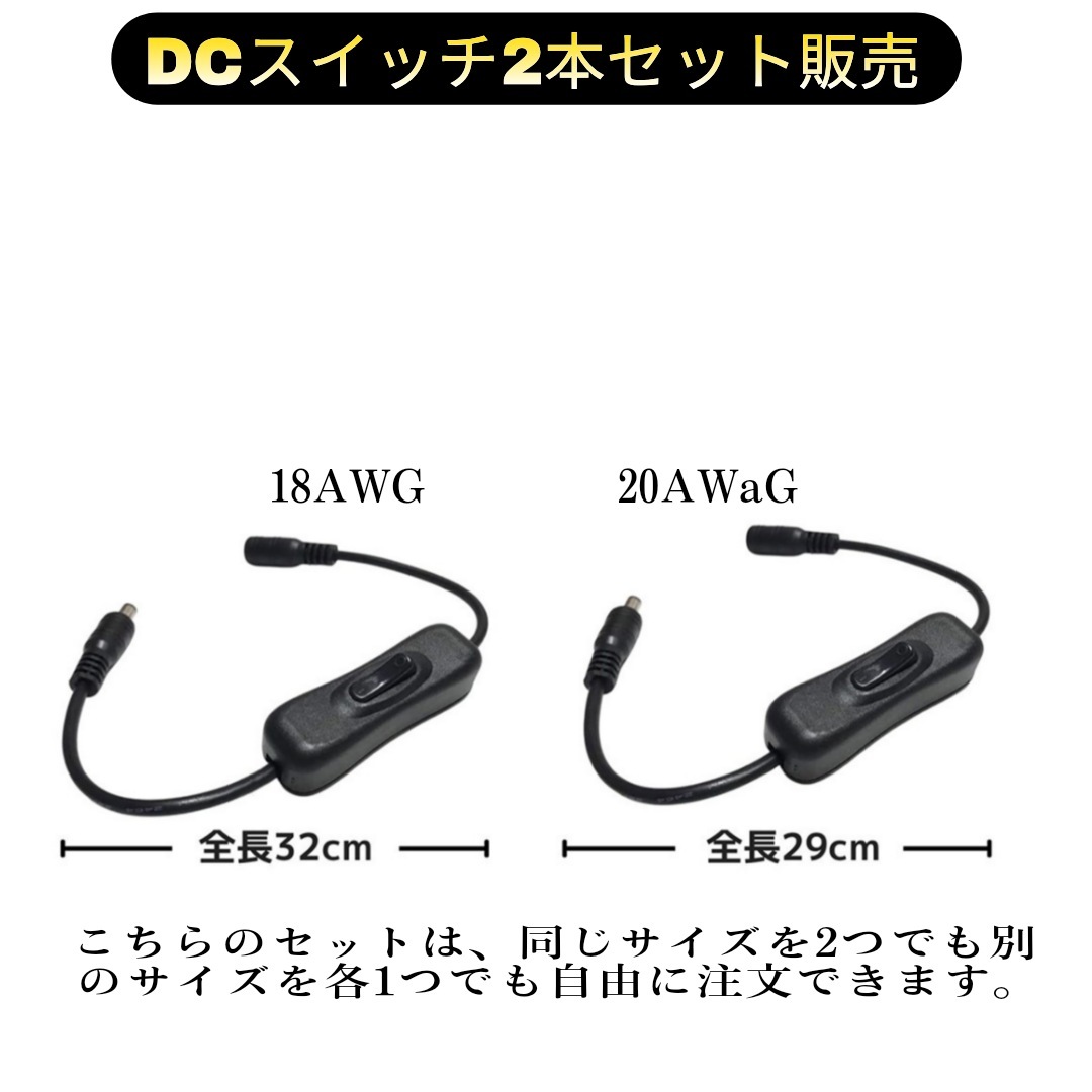 - 2本 スイッチ付きDCケーブル 【2サイズあり 18AWG/20AWG】DCスイッチ