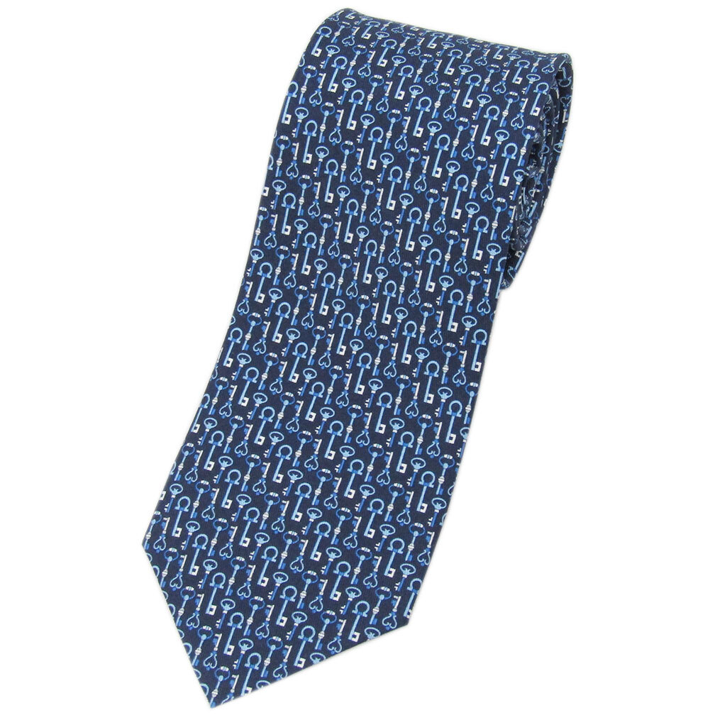 - 未使用 フェラガモ ブランド ネクタイ サルヴァトーレ・フェラガモ シルク 100% 鍵 キー ネイビー ブルー 紺 青 40203