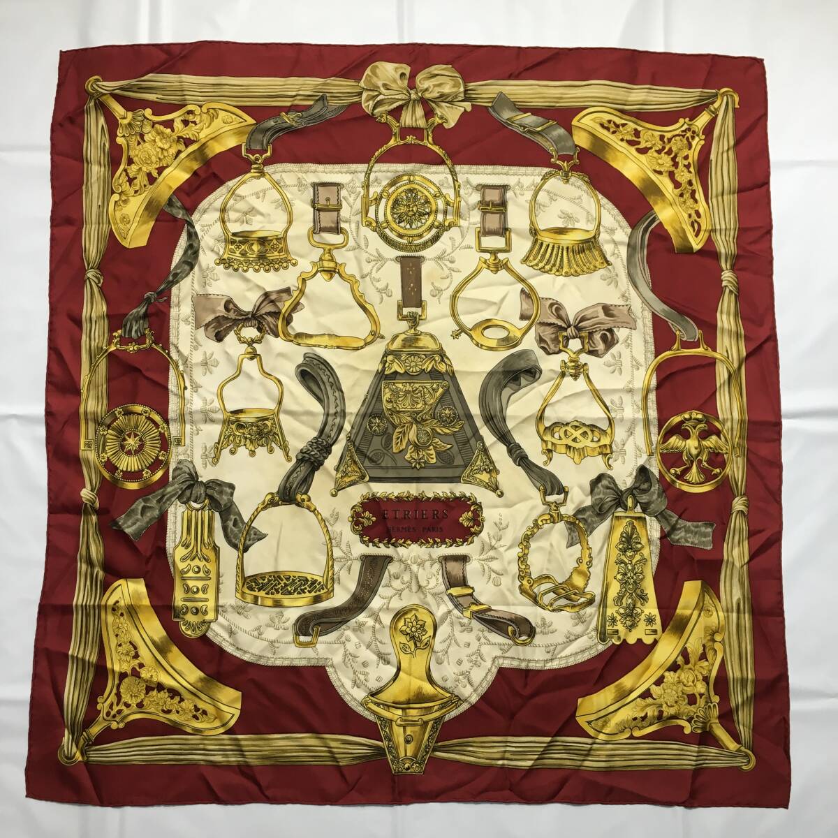 - 74B86|美品|エルメス カレ 90 スカーフ ボルドー マルチカラー