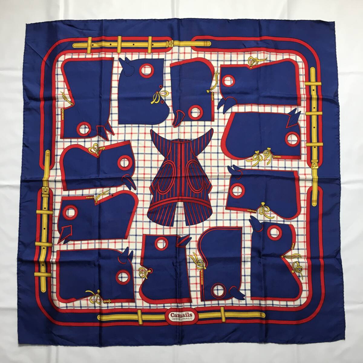 - 74B95|美品|エルメス カレ 90 スカーフ ネイビーブルー