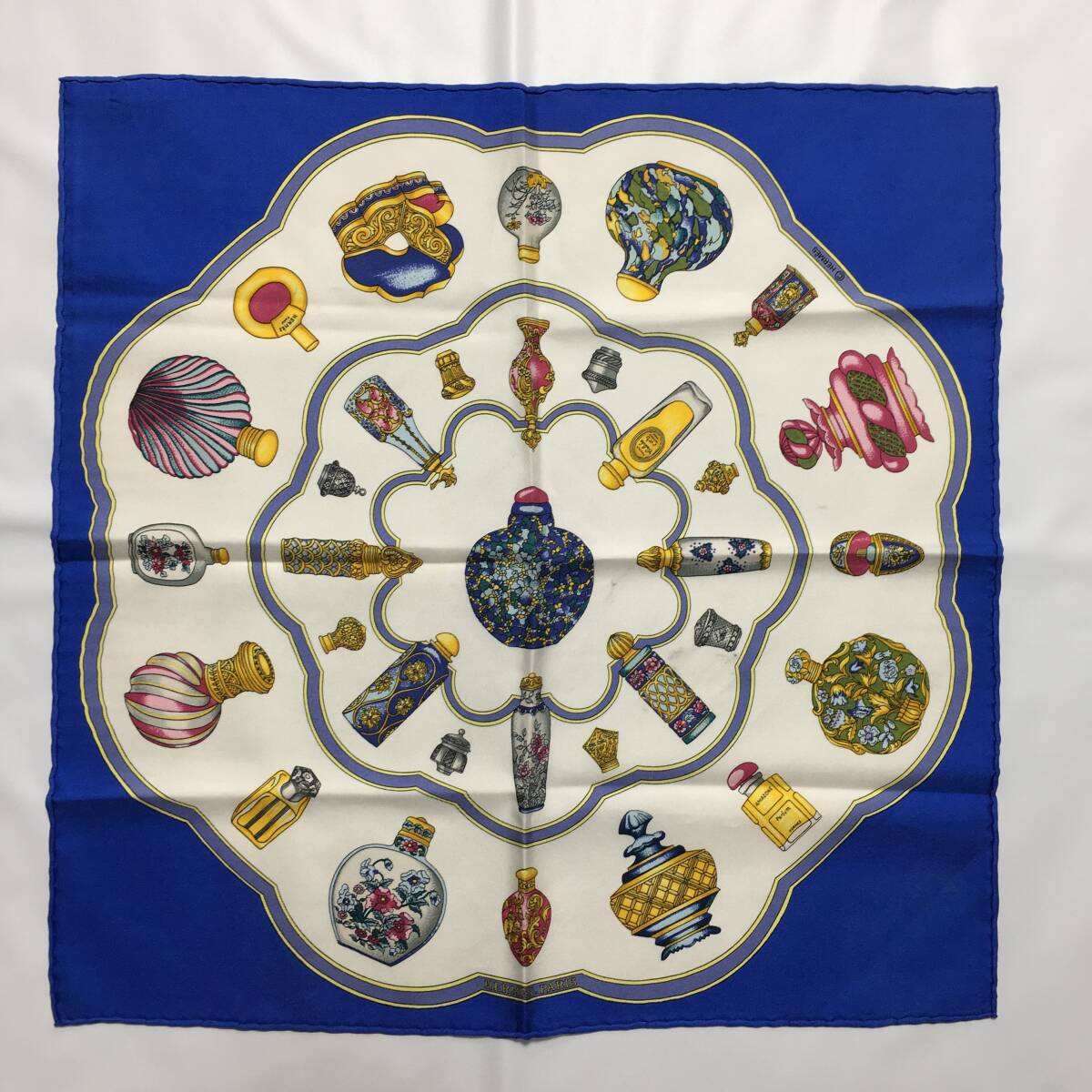 - 74B92|美品|エルメス プチカレ スカーフ シルク ブルー マルチカラー