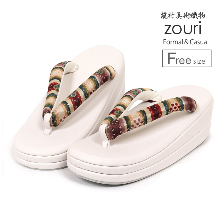 - 草履 レディース フリー 女性 ぞうり カジュアル 着物 訪問着 龍村美術織物 zouri 歩きやすい フォーマル 2段 アイボリー z7329