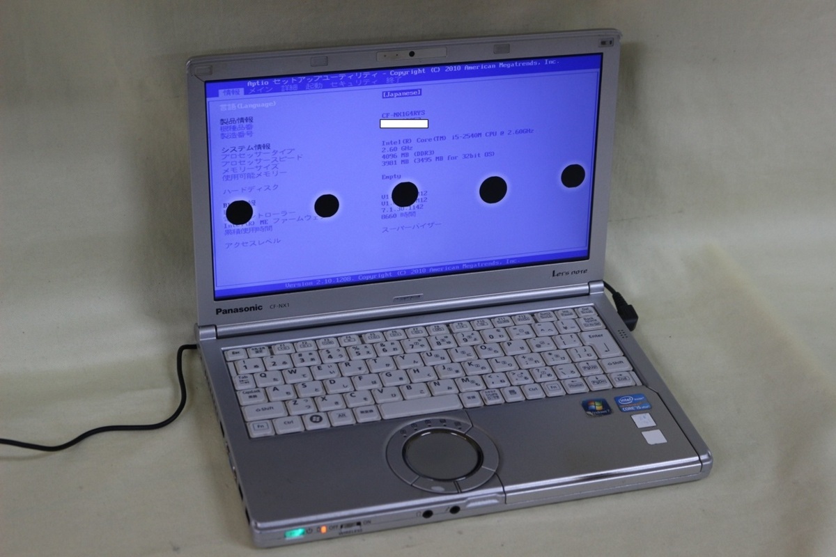- ジャンク品ノートパソコン Panasonic Let's note CF-NX1 COREi5 メモリ4GB HDD無 12.1inchワイド カメラ内蔵 起動確認済 代引き可