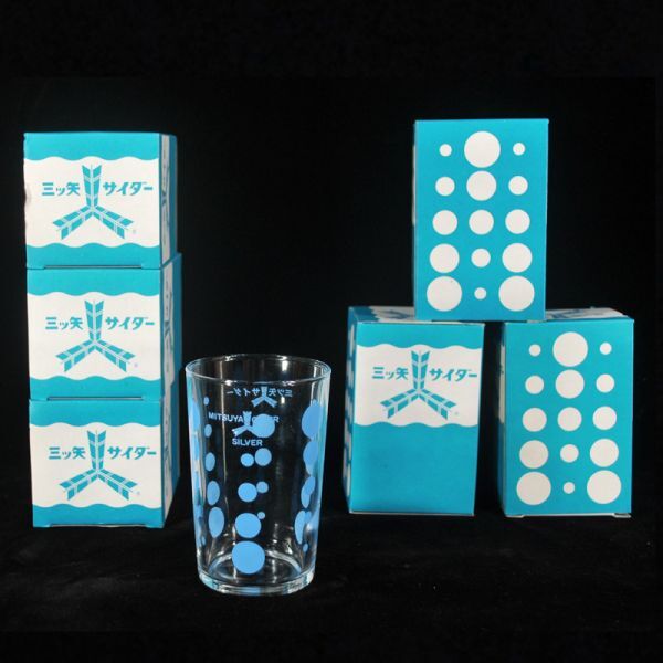 > ●1858● 昭和レトロな秀品! ◆ 昭和レトロ 三ツ矢サイダー 水玉模様 タンブラー 元箱付 6 個で ◆ 未使用置き古し品です。