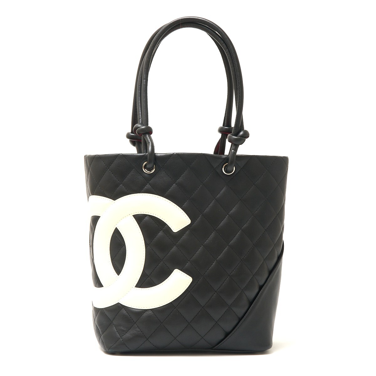 - CHANEL シャネル カンボンライン ミディアム トート 9番台 ショルダーバッグ ラムスキン ブラック×ピンク×シルバー金具 レディース
