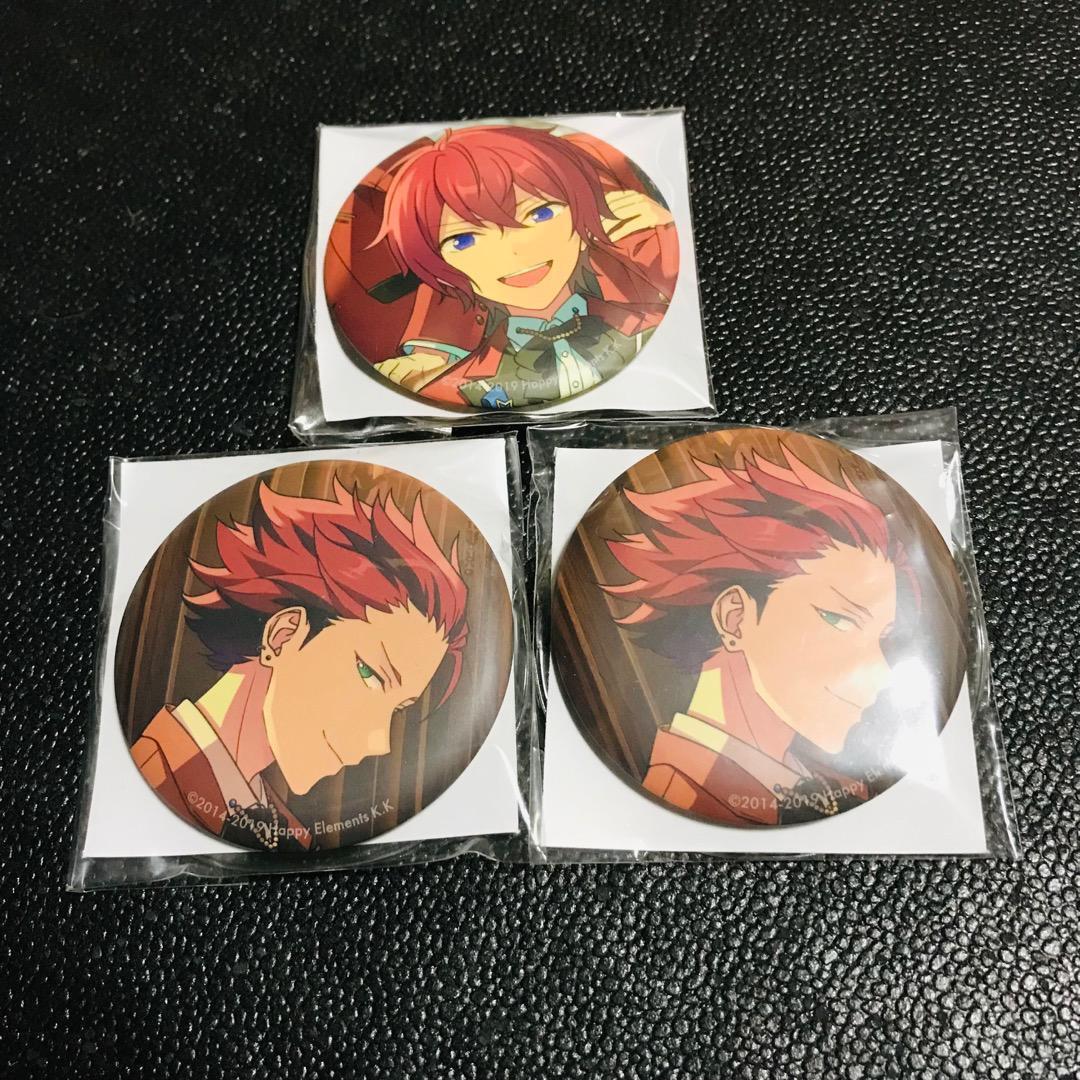 - 朱桜司 鬼龍紅郎 あんさんぶるスターズ 5周年 展示会 キャラバッジ 缶バッジ カバー 箔押し サイン バラエティ ガチャ カプセル
