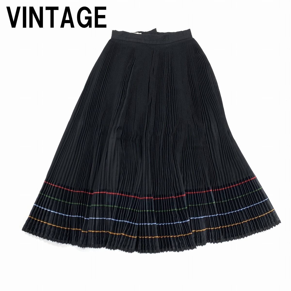 - VINTAGE ビンテージ ロングスカート HELENE straber ウール 裏地あり アコーディオンプリーツ フレア 黒 ブラック 38 YC312