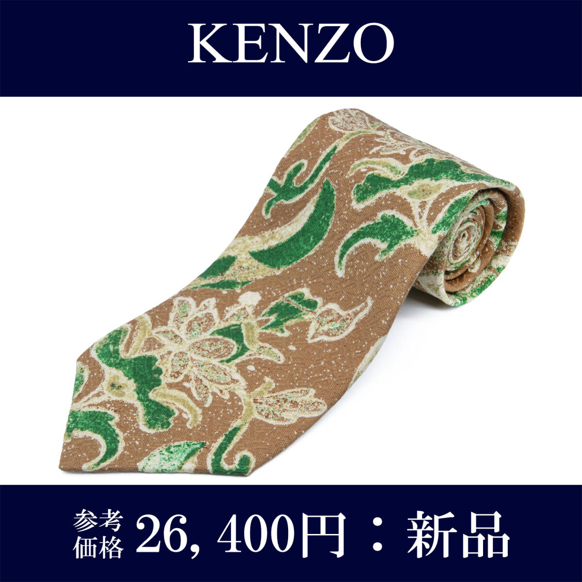 - 送料無料 ケンゾー ネクタイ 新品 シルク 茶色 ブラウン グリーン エクリュ ビジネス カジュアル 花 フラワー ブランド 日本製 綺麗 N870