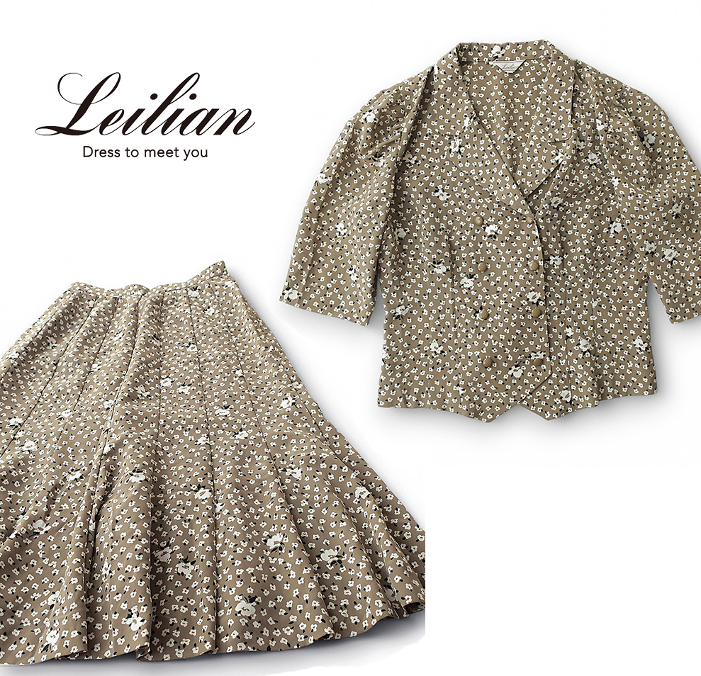 > 美品 Lelian レリアン 春夏 スカートセットアップ フローラル総柄 5分袖ジャケット/ロングフレアスカート サイズ9