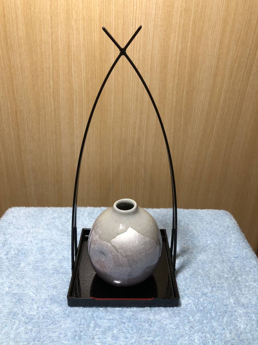 > 【送料無料】未使用 九谷焼 3号一輪生銀彩 台付き オリーブ 一輪挿し 九谷宗秀窯 花瓶 花器 華道 茶道 レトロ ヴィンテージ 個人宅保管品