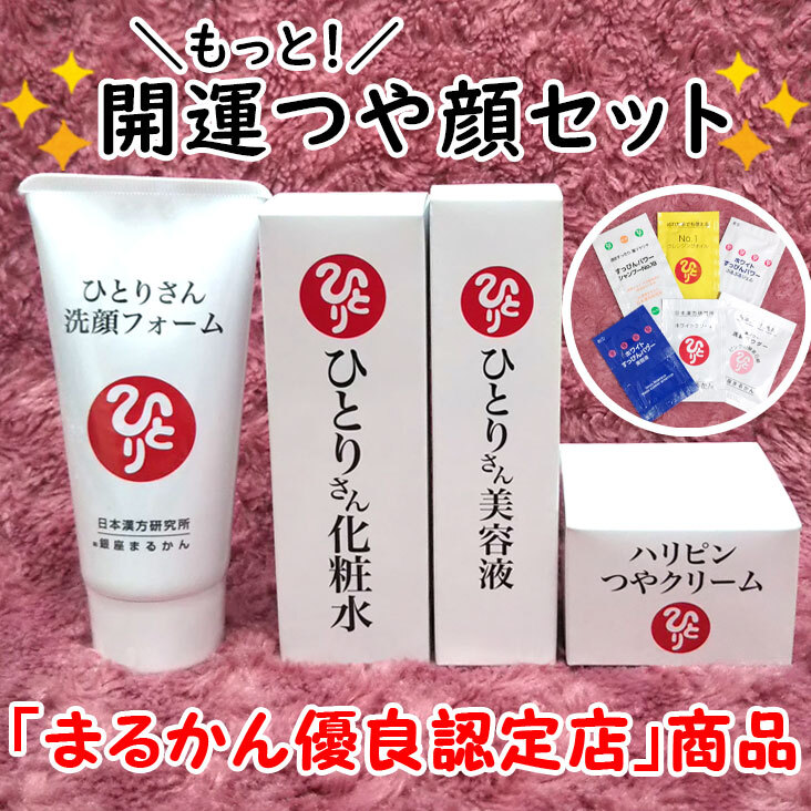 > 【送料無料】銀座まるかん ひとりさん洗顔フォーム+ひとりさん化粧水+ひとりさん美容液+ハリピンつやクリーム サンプル付き(can2026)