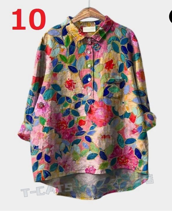 - ☆新品柄選択可シャツ ブラウス 着痩せ チュニックシャツ 綿麻 プリント柄 トップス レディース 長袖 体型カバー チュニック
