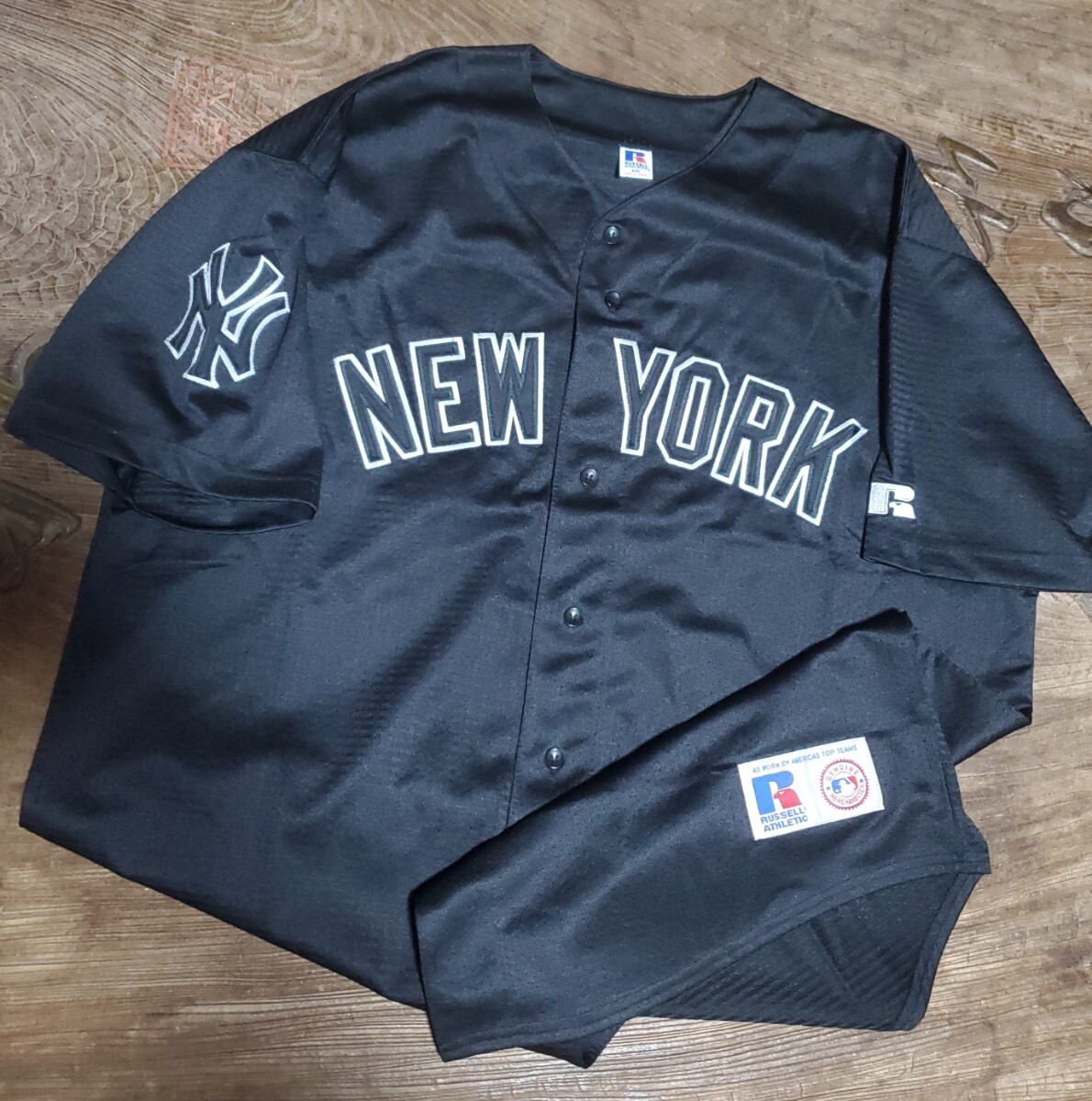 > 値下交渉 90's New York Yankees Black Silver Jersey RUSSELL ATHELETIC MADE IN KOREA 検/ 1990年代 MLB NY ヤンキース ジャージー 黒 銀