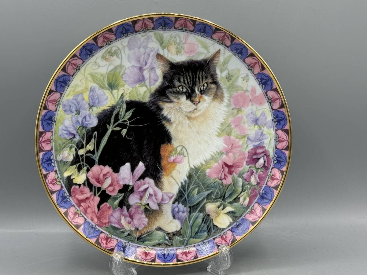 - ダンブリーミント レズリー レスリー アン アイボリー スイートピー 猫 ねこ ネコ 花 に囲まれて 飾り皿 (#-14)