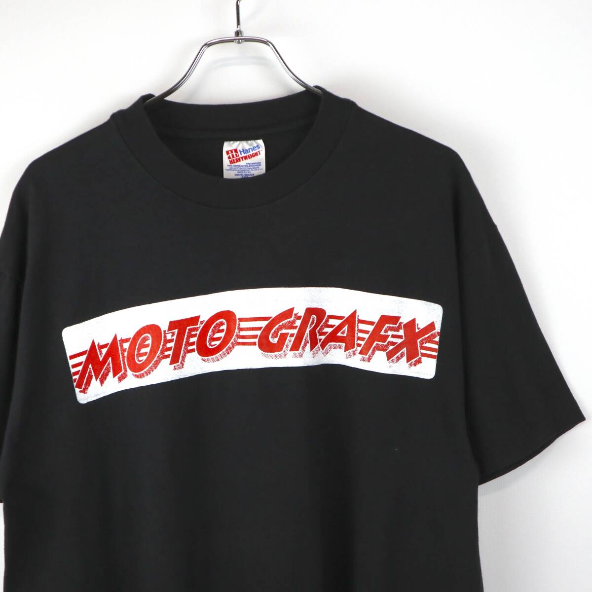 - USA製 90s MOTO GRAFX Tee モトグラフィックス Tシャツ ヴィンテージ 企業T ブラック 黒 バイク ハーレー シングル 美品 プリント レア