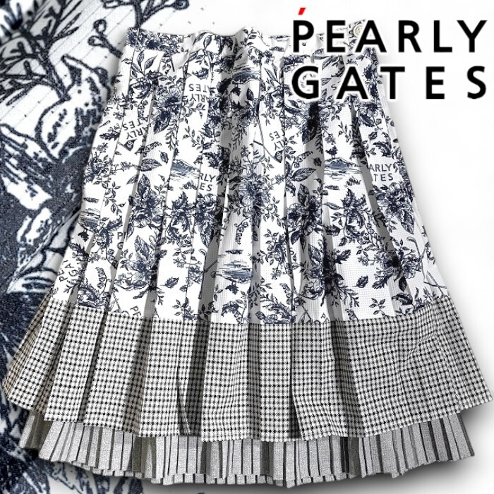 - PEARLY GATES パーリーゲイツ 新品 定価3.9万 繊細花柄×千鳥柄 プリーツスカート ゴルフウェア レディース 2234900 031 1 ▲044▼50528w10