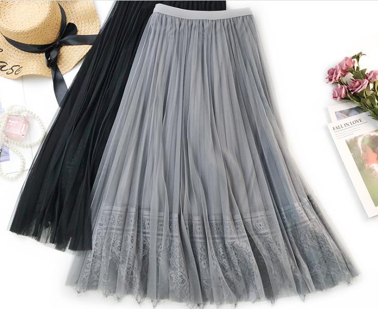 - 【新品】グレー プリッツ ロング チュール レース スカート 華やか 上品 ふんわり 可愛い 灰色 #246
