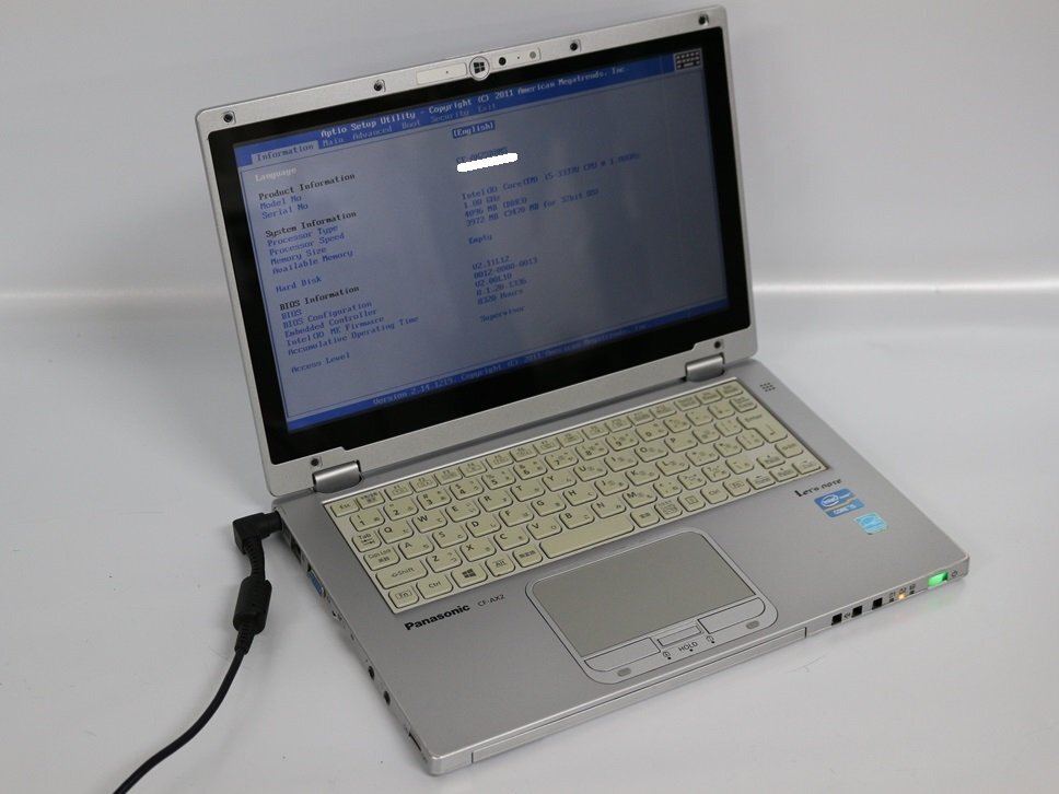 > ジャンク品 ノートパソコン Panasonic Let's note CF-AX2 Core i5第3世代 タッチパネル メモリ4GB SSD無 11.6inchワイド 起動確認済