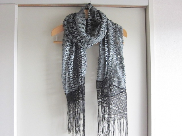 > 綺麗め ストール 幅53cm×長さ約204cm(フリンジ含む) 美品 大判 ショール 肩掛けパーティードレス羽織 着物 マフラーレース レア