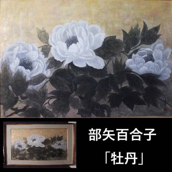 - 部矢百合子 「牡丹」 日本画30号 岩彩 企業家収集品 D889