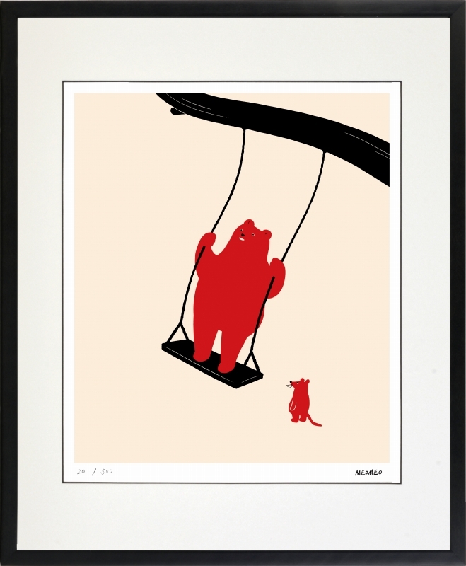 - ジークレー版画 額装絵画 MEOMEO 「ブランコに乗るクマ」 四ッ切