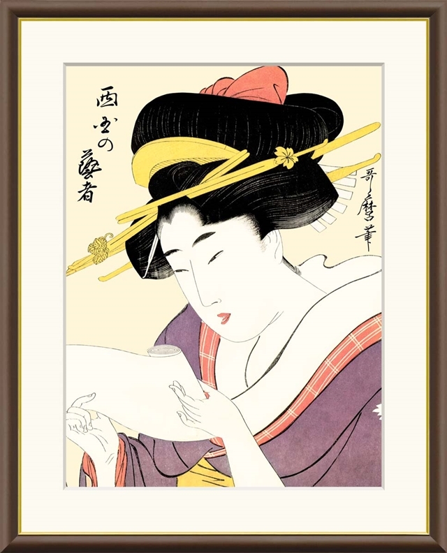 - 高精細デジタル額装版画 浮世絵 美人画 喜多川 歌麿 「 西国の芸者 」 サイズ F6号