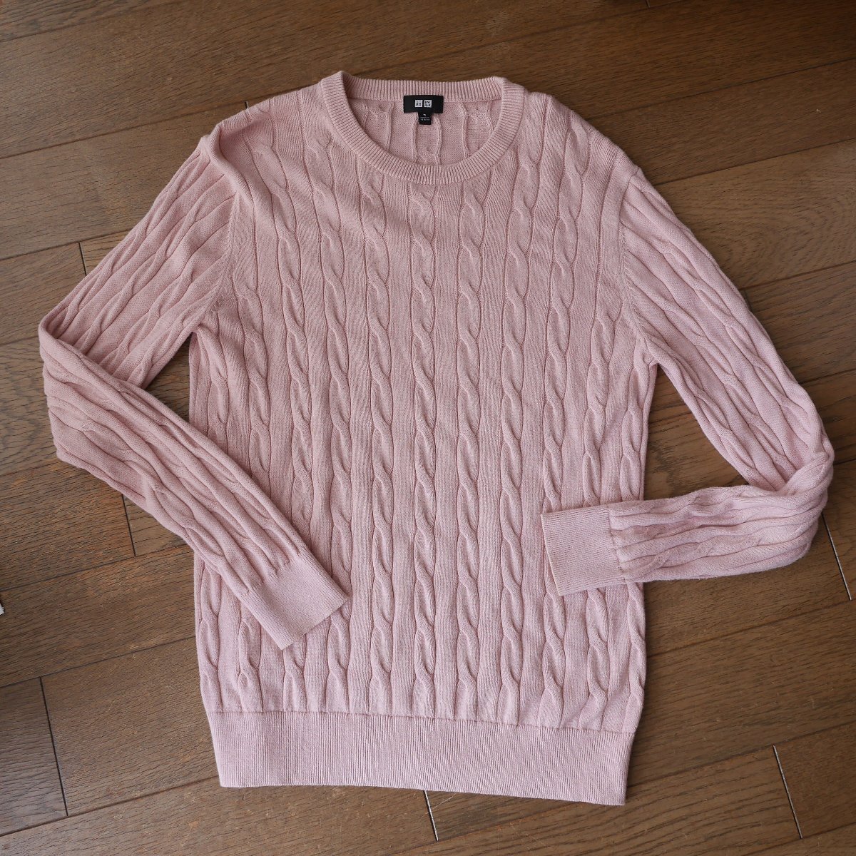 - Uniqlo ユニクロ カシミア混 コットン セーター M ピンク ケーブル編み