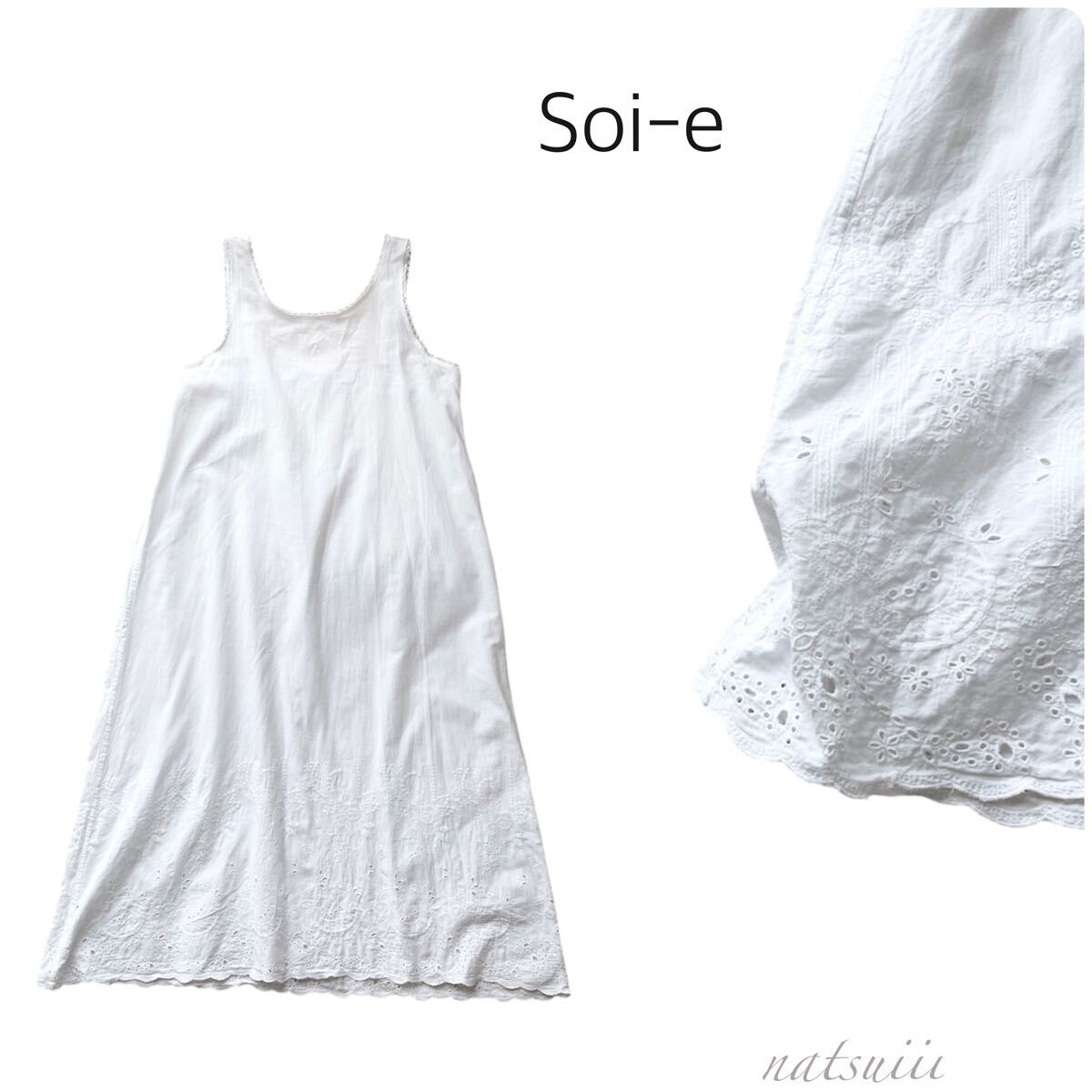 - Soi-e ソワ . カットワーク 刺繍 裾 スカラップ コットン レース ワンピース カリネ 送料無料