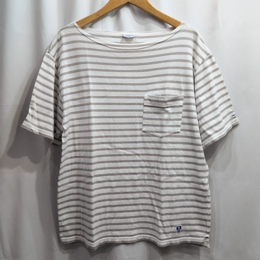 > 【送料430円】ORCIVAL オーシバル ポケット付 ボーダーTシャツ 半袖 size 4 メンズ カットソー 白 グレー 日本製 コットン 綿 オーチバル