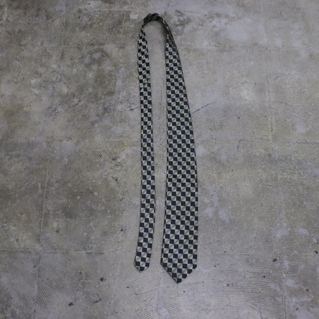 > NT393 2000年代製 ALEXANDERJULIAN ネクタイ■00s ブラック グリーンチェックアンティーク 雑貨 アクセサリー 古着 アメカジ ストリート