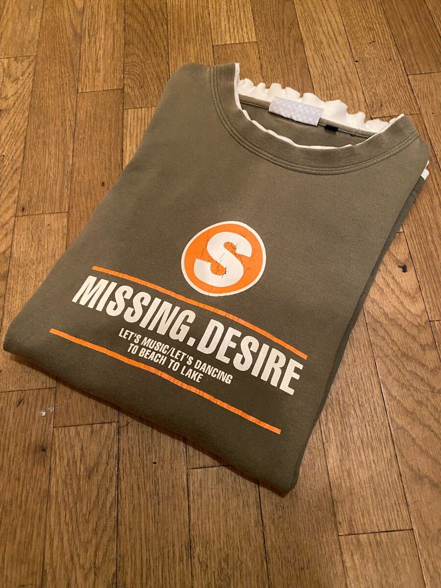 - 30年前古着ジャンク扱いレイヤード重ね着ロング長袖プリントTシャツカットソーグリーンL