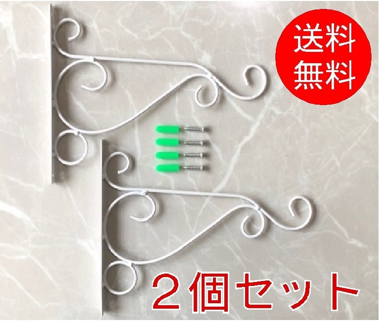 - 【2個セット】■ハンギング金具(白)KB-10■ハンギングバスケット 植物 ガーデニング 壁掛け用金具 アイアンブラケット 壁面金具