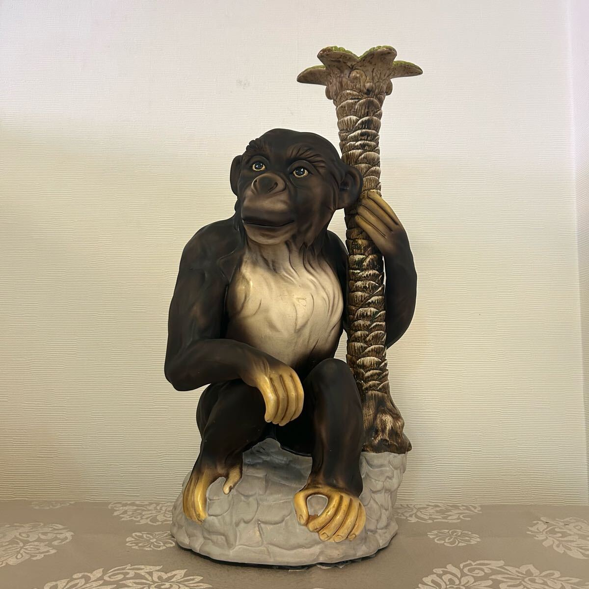 - 【美品】チンパンジー置物★動物 インテリア 陶器 オブジェ フラワースタンド
