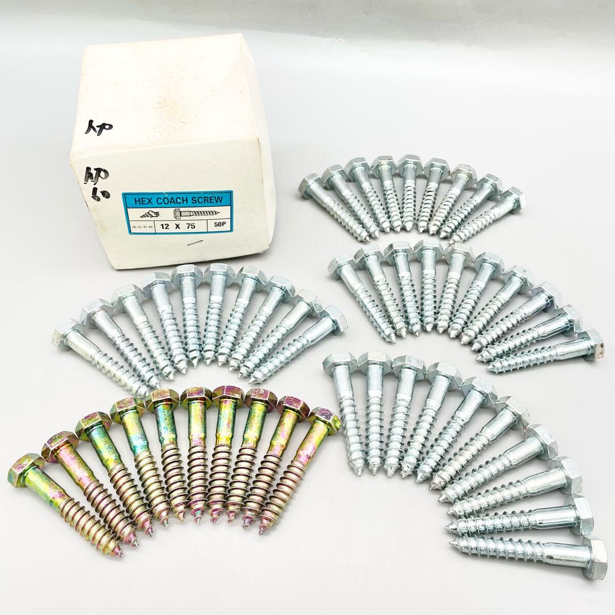> [新品 未使用品] HEX COACH SCREW コーチスクリュー クロメート 12×75mm 約50本 セット ネジ 六角頭 大工 建築 金物屋 在庫品 まとめ売り
